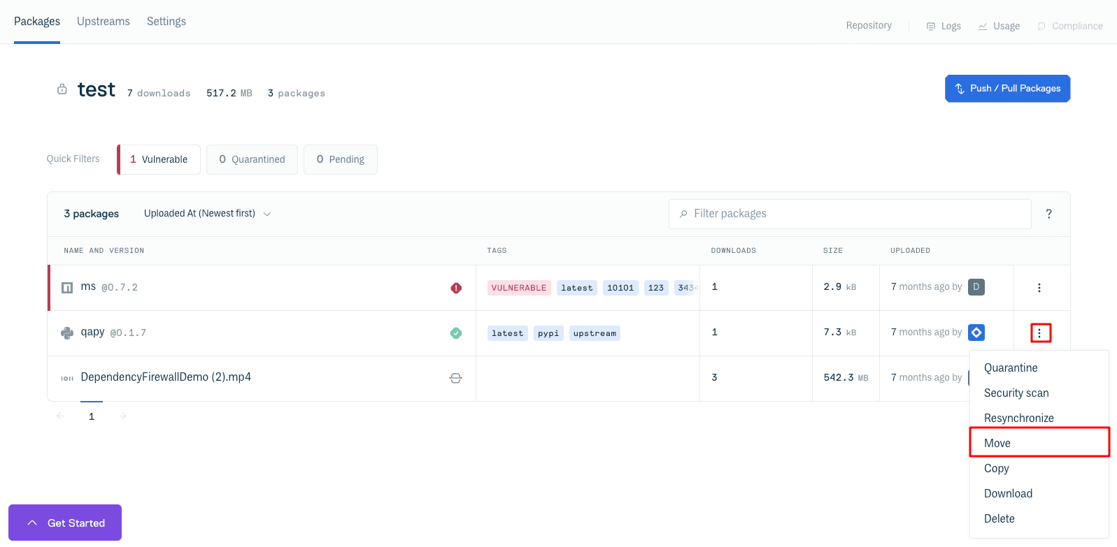 Move via Cloudsmith web app