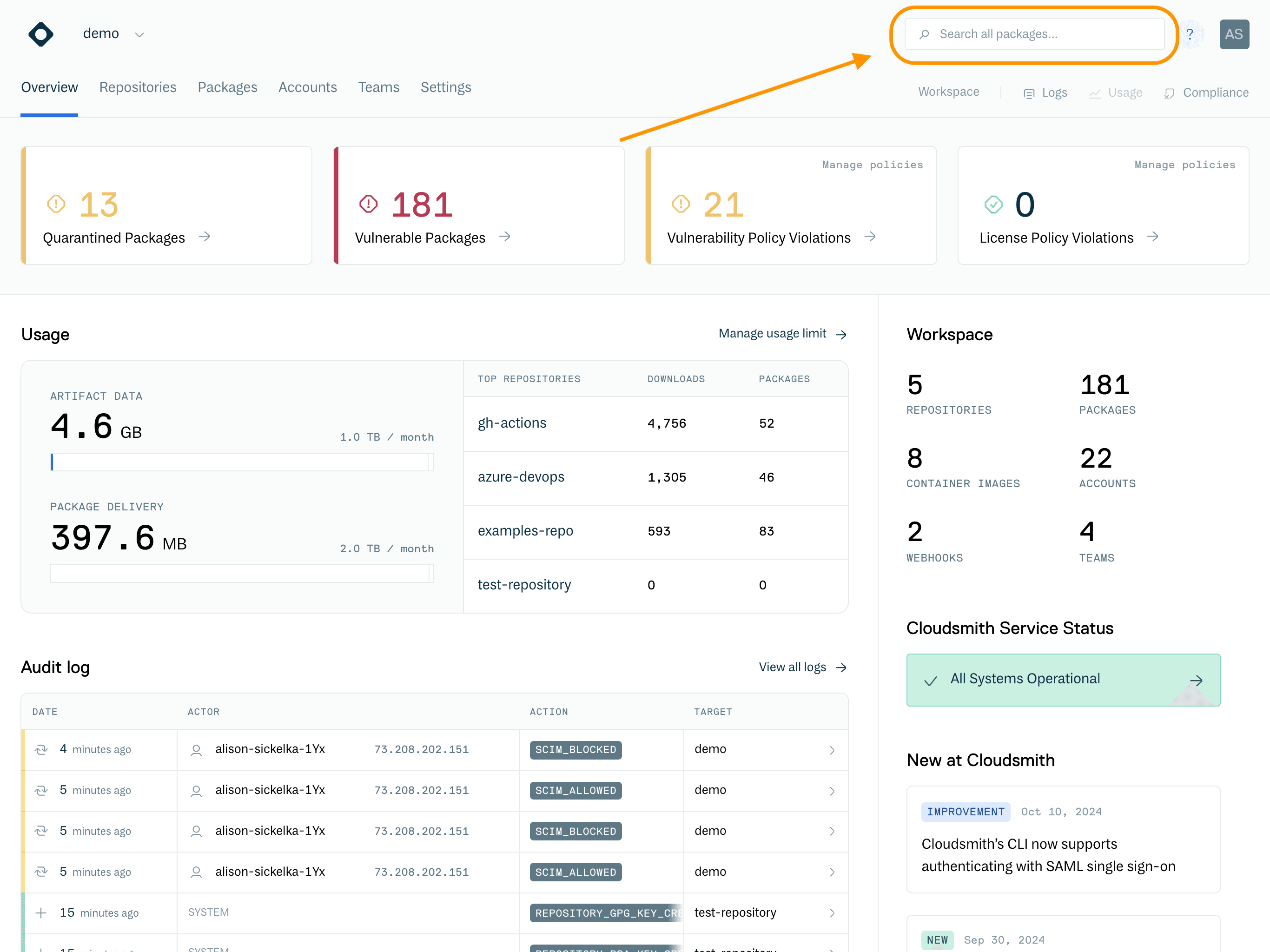 Searching Packages via the Cloudsmith web app