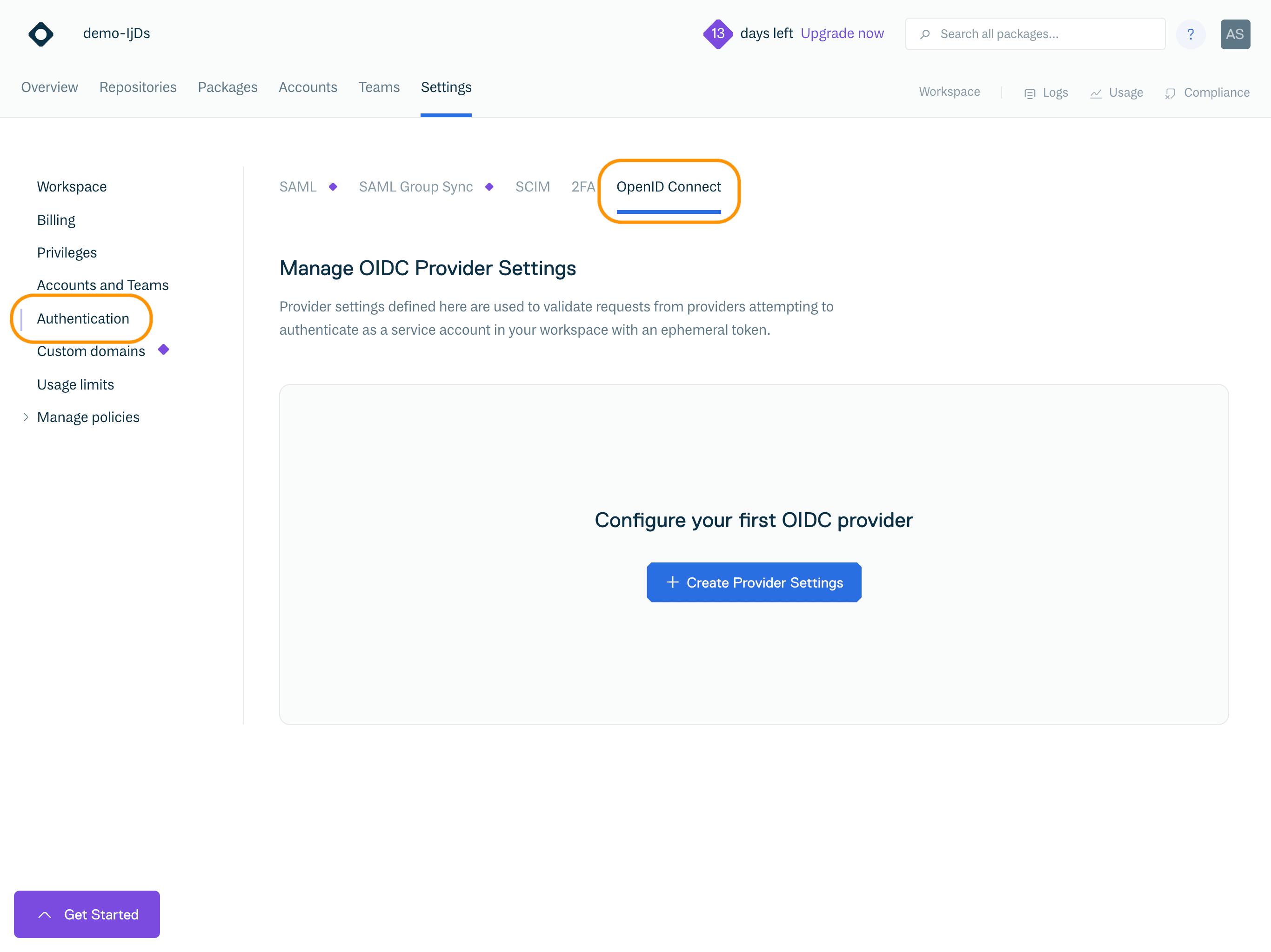 You must have the Manager or Owner role in your Cloudsmith organization to configure OIDC Provider Settings.