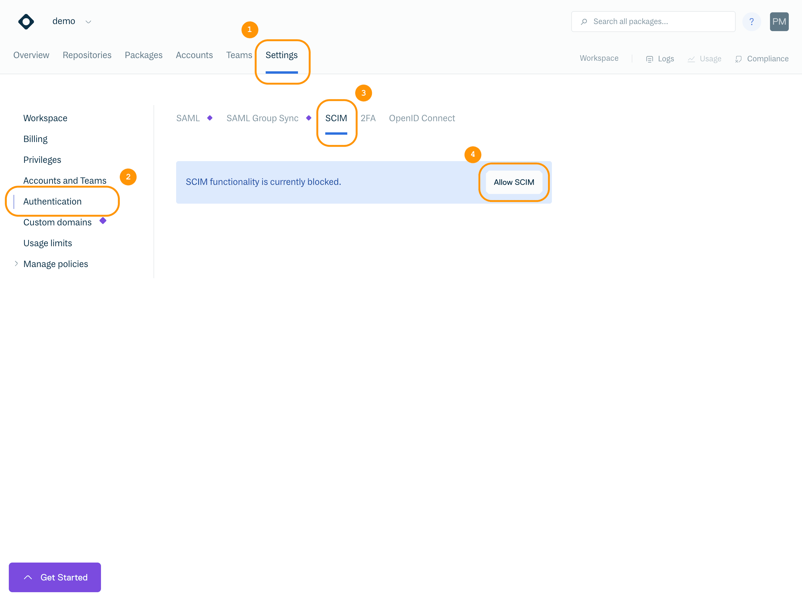 To begin using SCIM, you need to enable the SCIM functionality in the Cloudsmith Workspace Settings.