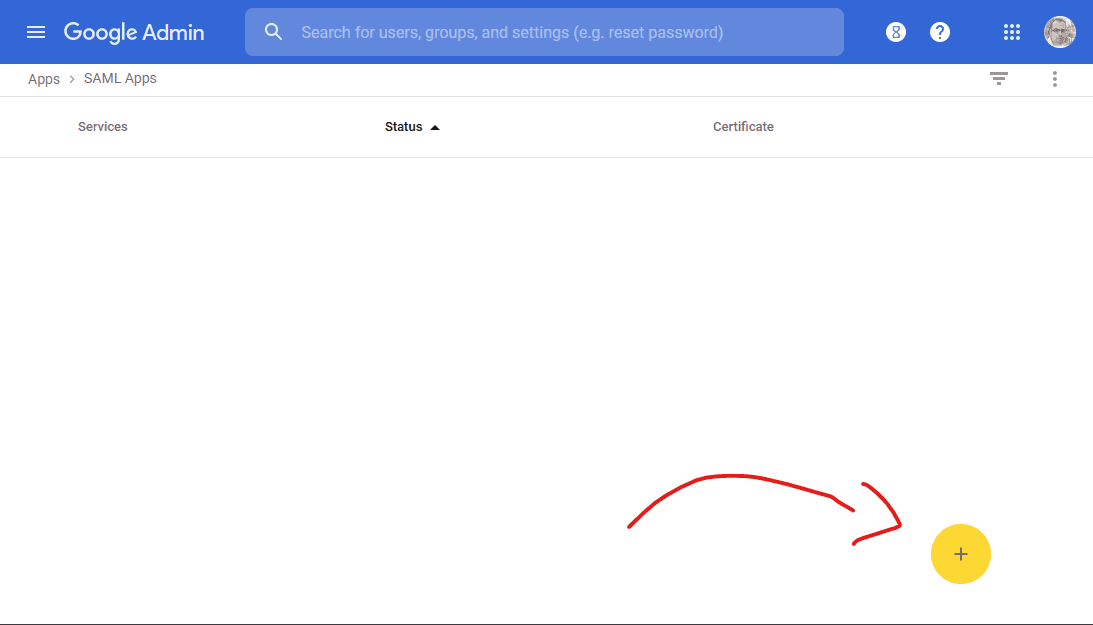 Click the yellow plus (+) button in the bottom right to add a new SAML application: