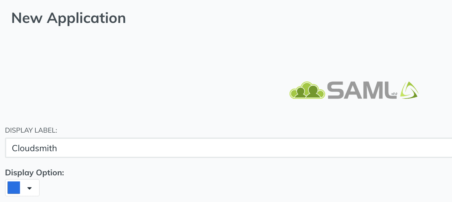 On the configuration screen, enter the Display Label as "Cloudsmith", and optionally choose a colour for the application.