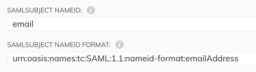 We then need to configure the SAML Name ID attribute. We want to choose email and the appropriate emailAddress format: