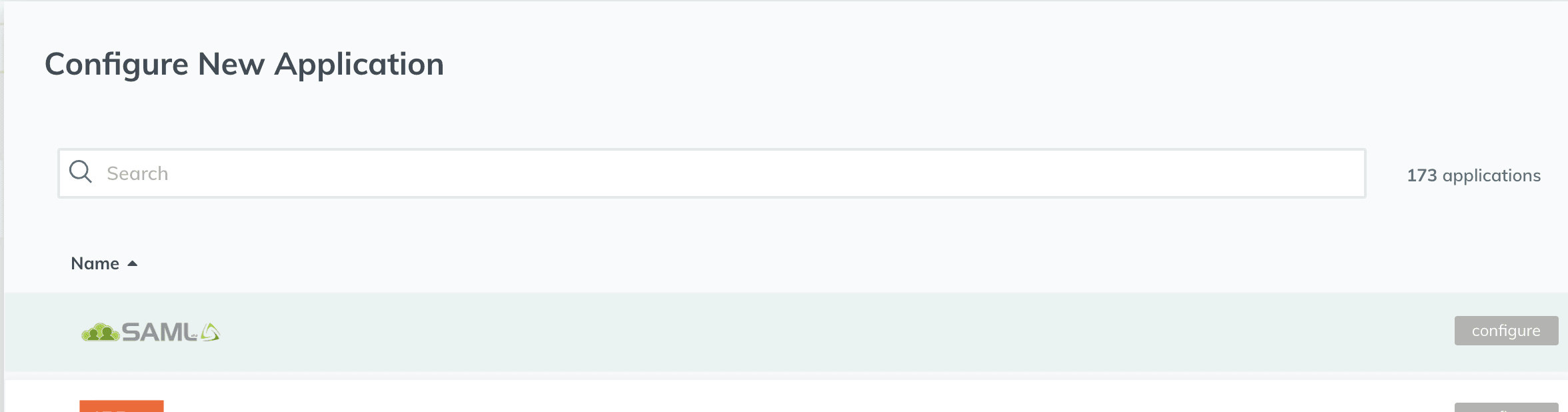 Choose the generic SAML connector (usually first in the list, labelled SAML) and hit Configure: