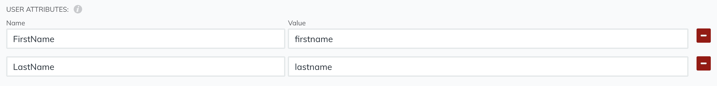 Cloudsmith requires that users are identified by a first and last name, so we'll need to configure JumpCloud to send those too. Under User Attributes click add attribute and enter first/last name exactly as follows: