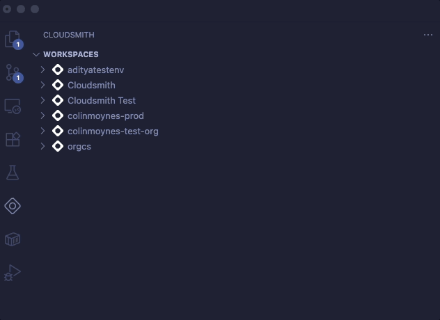 - Navigate to the Cloudsmith view in the VS Code Activity Bar.