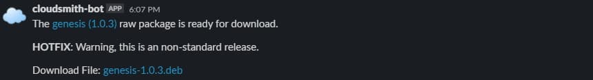 For ChatOps, you can utilise webhooks to send a message to a chat tool such as Slack when each type of event occurs. You'll format this in such a way so as to present critical information to your team, such as what the package is, where it is located, who uploaded it, and how to access it, etc. If you're really fancy, you'll have a Slack integration that lets users interact with Cloudsmith via slash commands, for super slick bi-directional DevOps goodness.