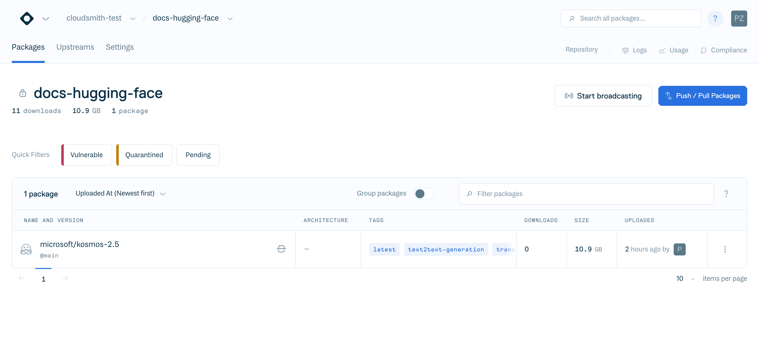 This approach creates an intuitive mapping: commit-version. Each of your Hugging Face repositories is treated as a package in Cloudsmith, with the package name matching the repository name (e.g., workspace/my-awesome-model).