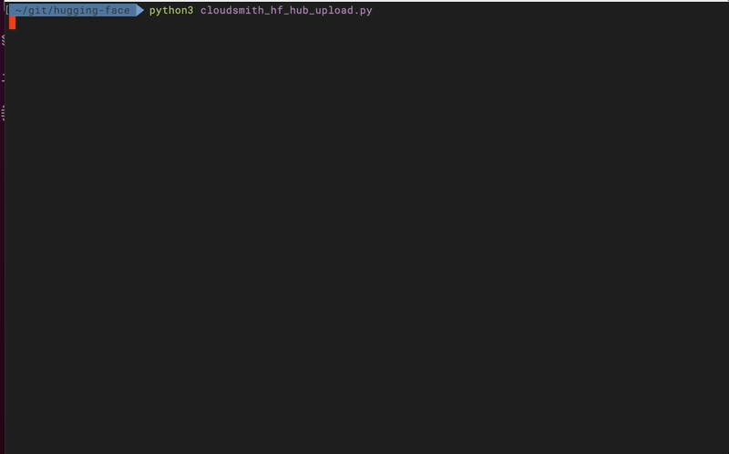 You can easily upload your models and datasets to Cloudsmith using the tools you already know. Cloudsmith supports uploads via the huggingface_hub Python library, which is the underlying engine for popular libraries like transformers and datasets.