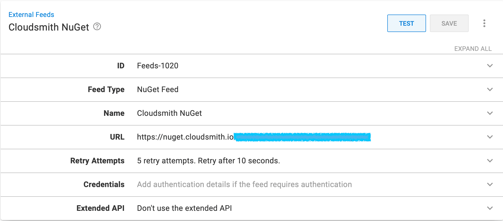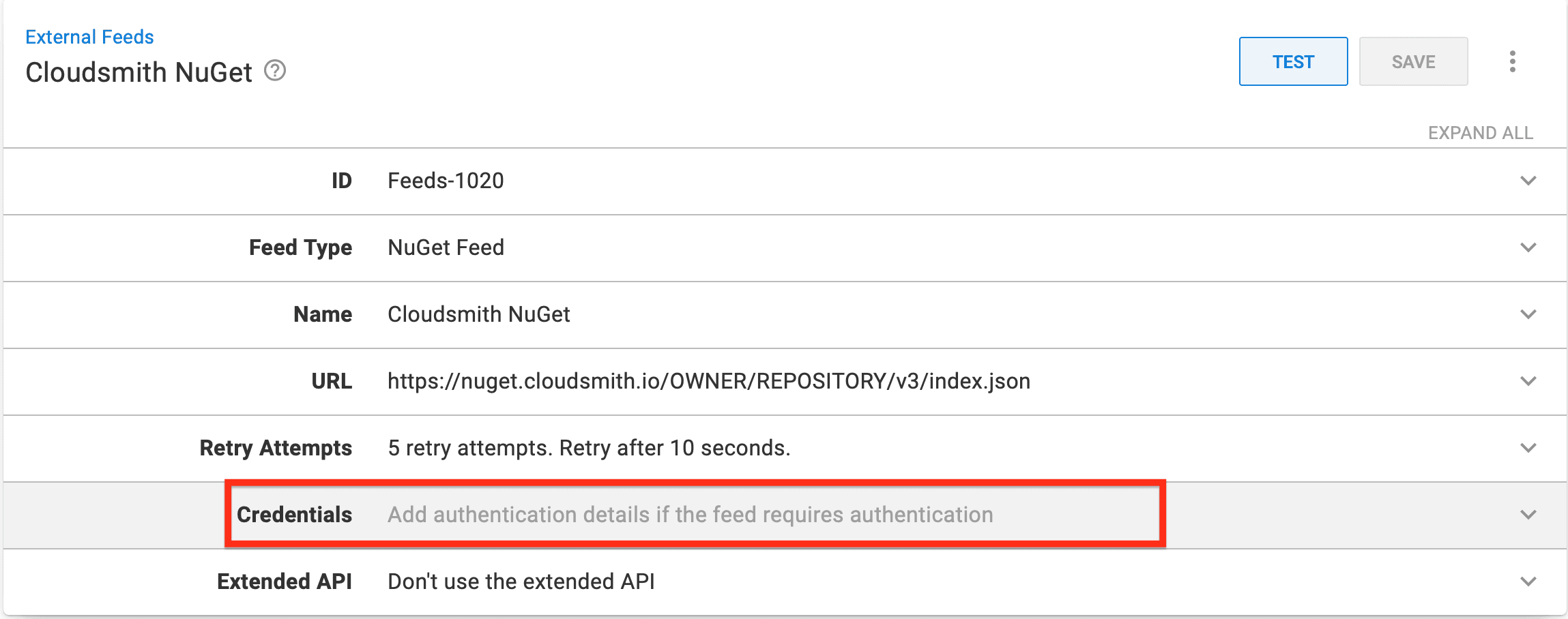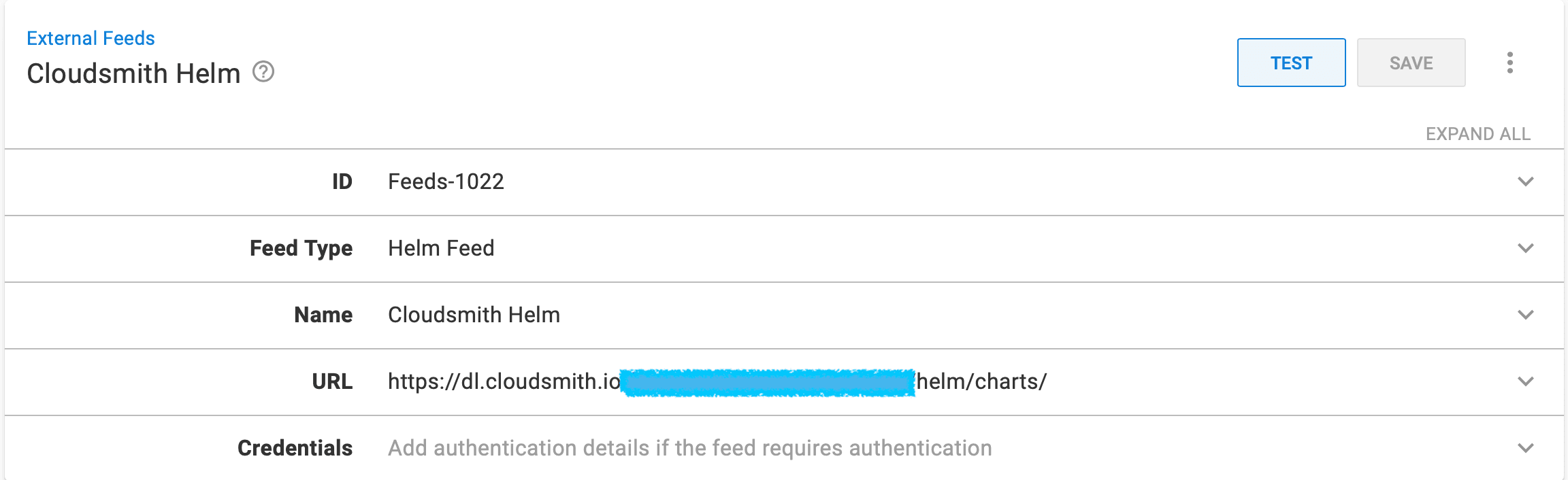 - Populate the credentials of your Cloudsmith repository if necessary. For more information on the URL Feed follow the section below