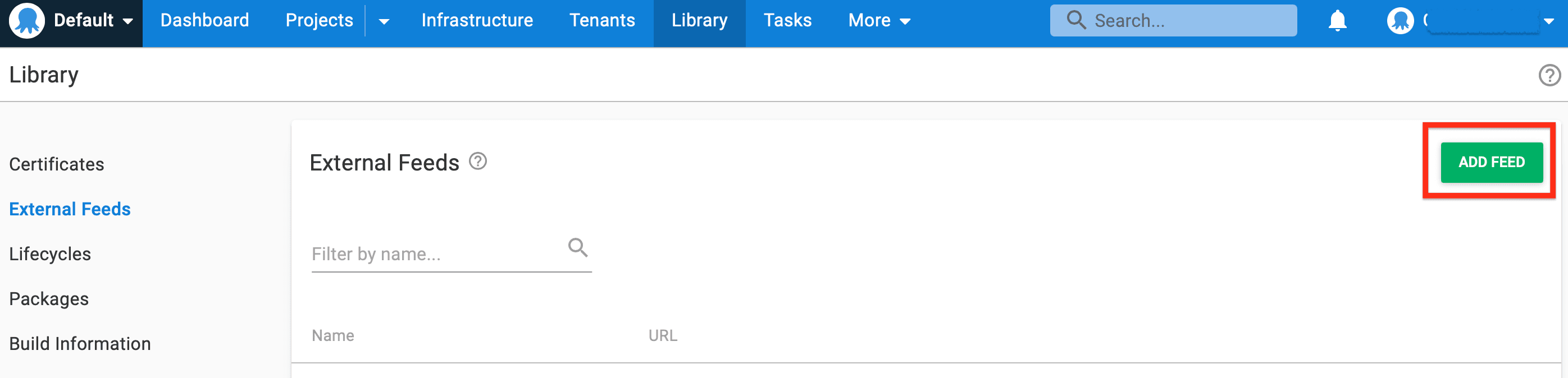 Create the External Feed in Octopus