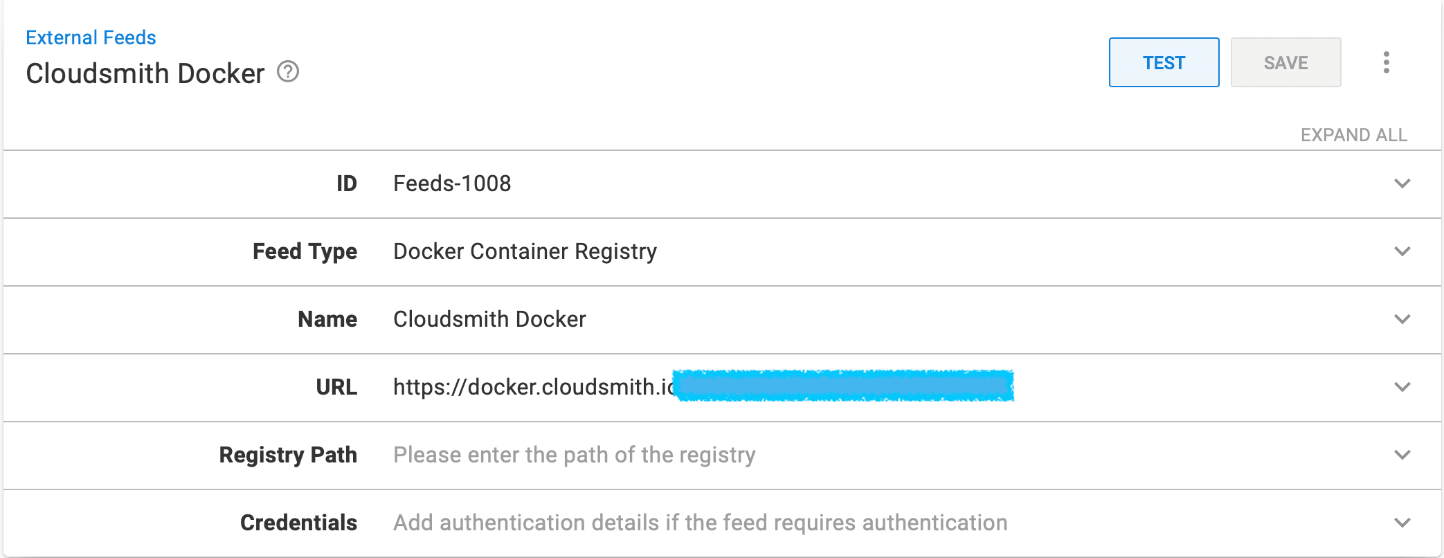 - Enter the HTTP/HTTPS URL of the feed for your Cloudsmith Docker repository following the instructions in the box below: