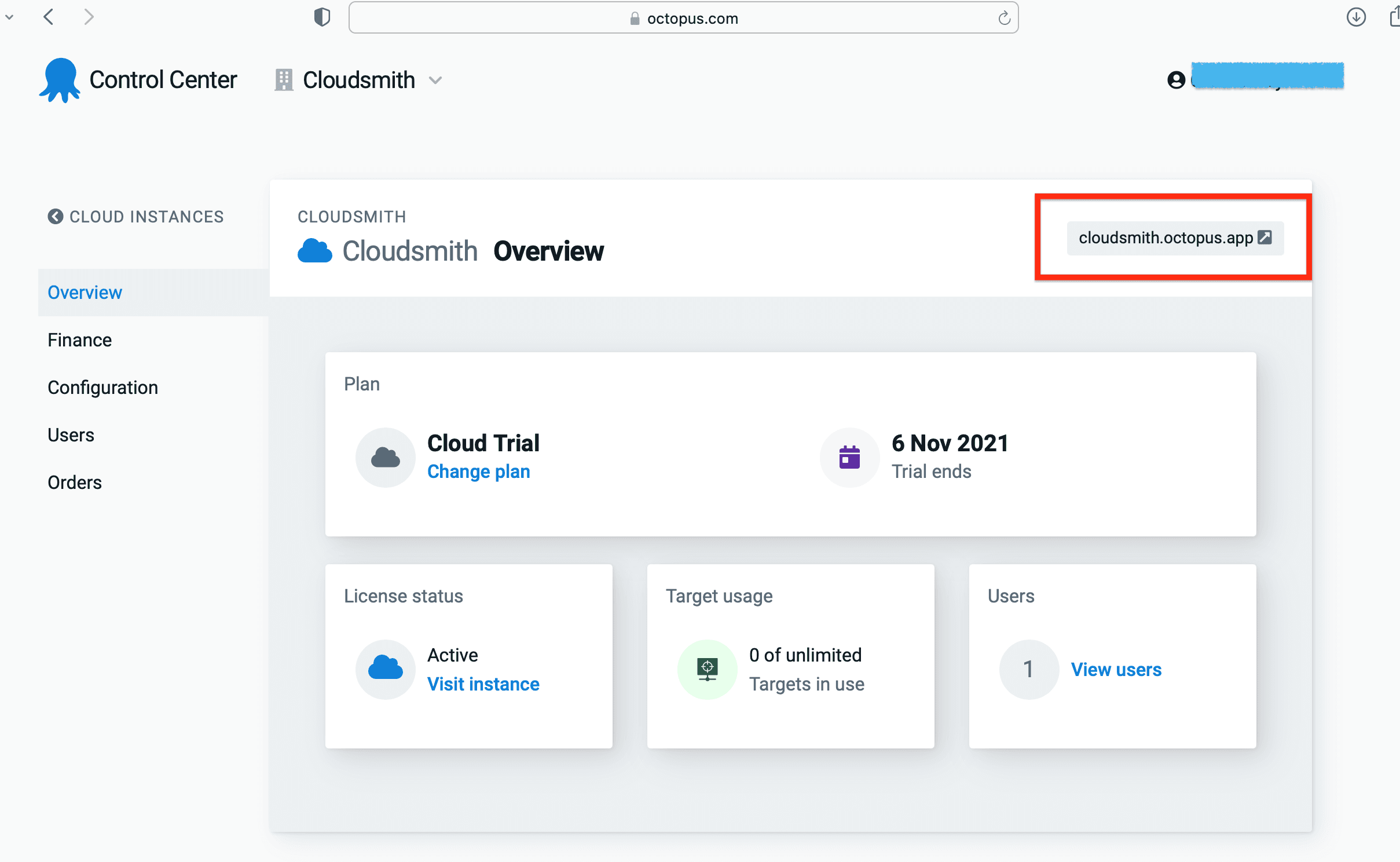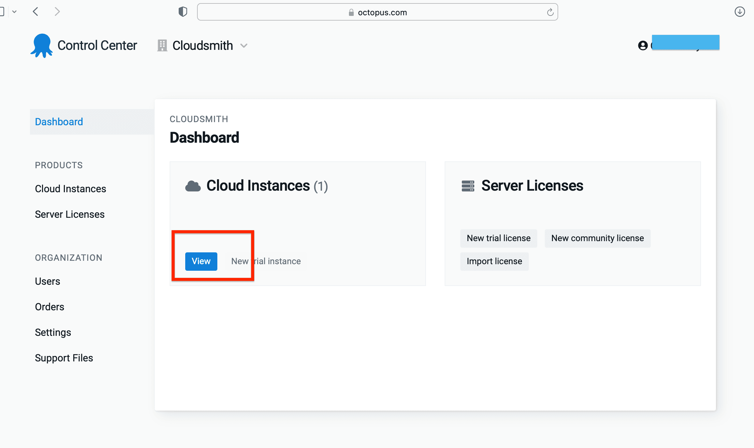 Log into your Octopus control centre and navigate to the Octopus dashboard for your Organization.