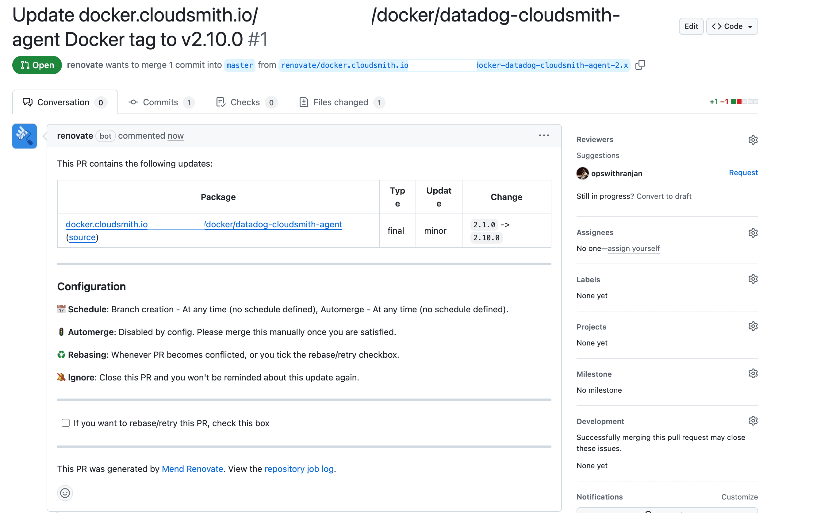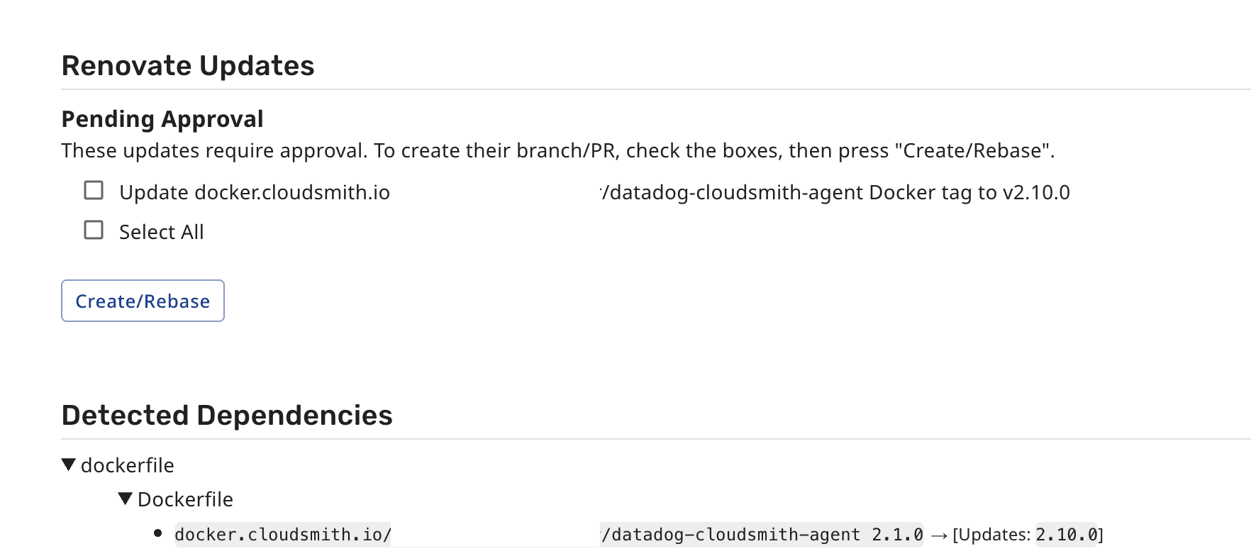 - Check Cloudsmith for newer versions. In the image below, you can observe how Renovate detected an upgraded version of the