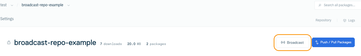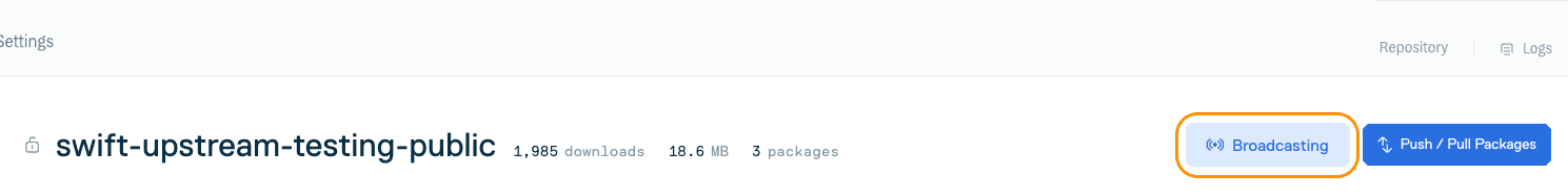 To disable a Broadcast, press the “Broadcasting” button. When a Broadcast is disabled, the URL associated with it and any package within your repository will not be accessible.