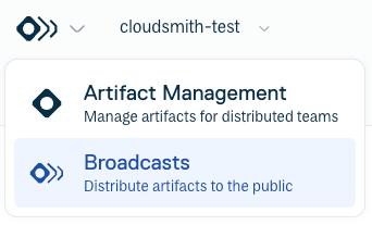 You can manage all aspects of your broadcasts by navigating to the Broadcasts Overview section of the Cloudsmith web app. To get there, click on the Cloudsmith logo in the top-left corner and switch from "Artifact Management" to Broadcasts. Alternatively, browse to: https://app.cloudsmith.com/distribution.