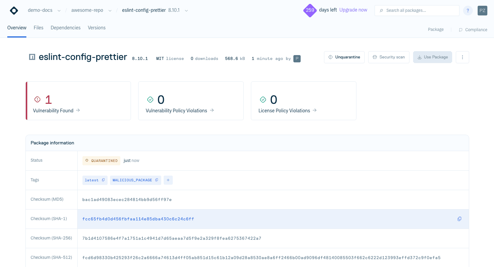 Malicious package detection in Cloudsmith
